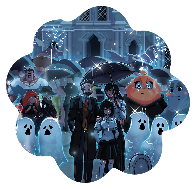 An original soundtrack threaded in the narrative. Songs start as fragments, and build through chapters and character growth.